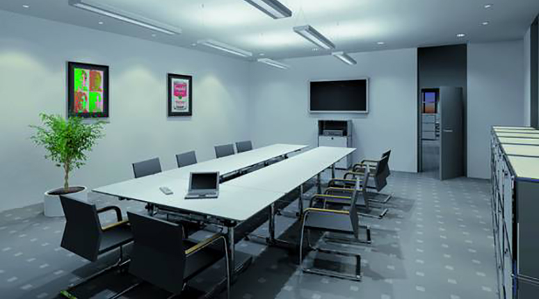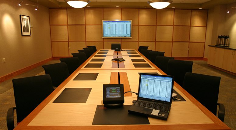 This equipment configuration is designed to support a standard, small to medium sized collaborative room, seating anywhere from 2 to 8 participants at the conference table. Additional seating may be needed for local presentations and meetings. Keep in mind that only the seated participants are intended to be visible during a videoconference or heard via microphones during a video or audioconference.