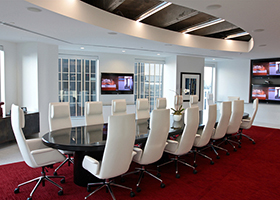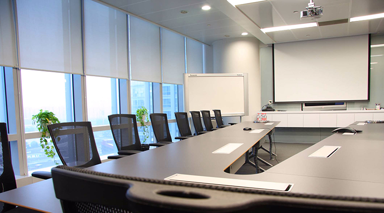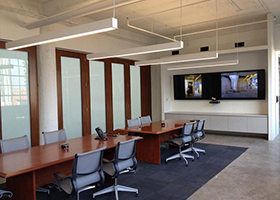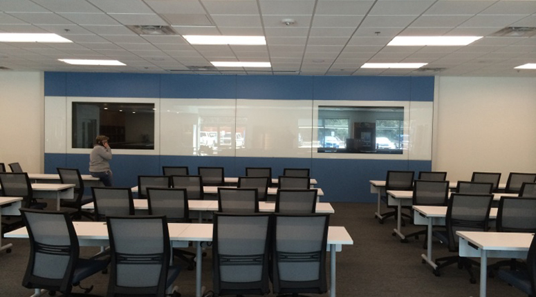 Projector with either a motorized or fixed screen located on the front wall, to enable viewing of PC and video sources. Alternatively, multiple large format LED displays may be used as standalone visual aides, or in conjunction with a projector and screen.